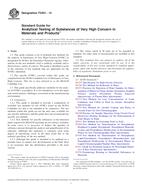 1.1 This guide contains a list of potential test methods for the analysis of Substances of Very High Concern (SVHC) as designated by ECHA, the European Chemicals Agency. Information on the test methods cited is publicly available and is drawn from a variety of sources. The guide is intended to assist in the selection of test methods that are applicable for the SVHCs identified.