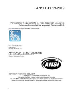 B11 Standards, Inc. is ANSI-accredited Standards Developing Organization that administers and develops the ANSI B11 series of American National Standards and Technical Report on machine/machine too/machinery safety. B11 Standards Inc. also participates in a very large number of both national and international standards development activities.